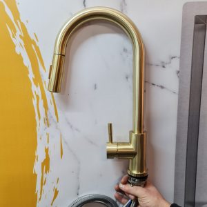 Adaugă în coșMAI MULTEBaterie CookingAid TOUCH ON GOLDEN TAP CU SENZOR ATINGERE aurie cu furtun dus retractabil / extractibil + buton interschimbabil jet/dus si finisaj auriu periat antiamprenta