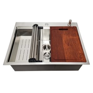 Componente: Chiuveta Infinity Topmount Workstation cu 5 accesorii: dozator sapun inox + tavita vase/paste/fructe + scurgator plat inox+ gratar rulabil inox + tocator lemn Sapele. Include: pachet complet accesorii montaj.12.990,00 lei7.890,00 leiEvaluat la 5.00 din 5 -