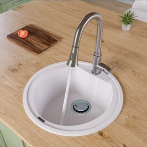Citește mai multMAI MULTEChiuveta bucatarie rotunda granit CookingAid Naiky NK5110 Alba / Polar White + accesorii montaj
