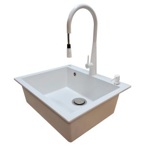 Adaugă în coșMAI MULTEChiuveta bucatarie granit CookingAid Cube ON7610 Alba / Polar White + Baterie alba CookingAid Indiana extractibila + Dozator Sapun Alb + accesorii montaj