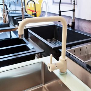 Este tipul de baterie ideala de utilizat pe chiuvetele care sunt montate in fata geamului de la bucatarie acolo unde deschiderea acestuia nu este posibila decat daca se foloseste o astfel de baterie de bucatarie.
