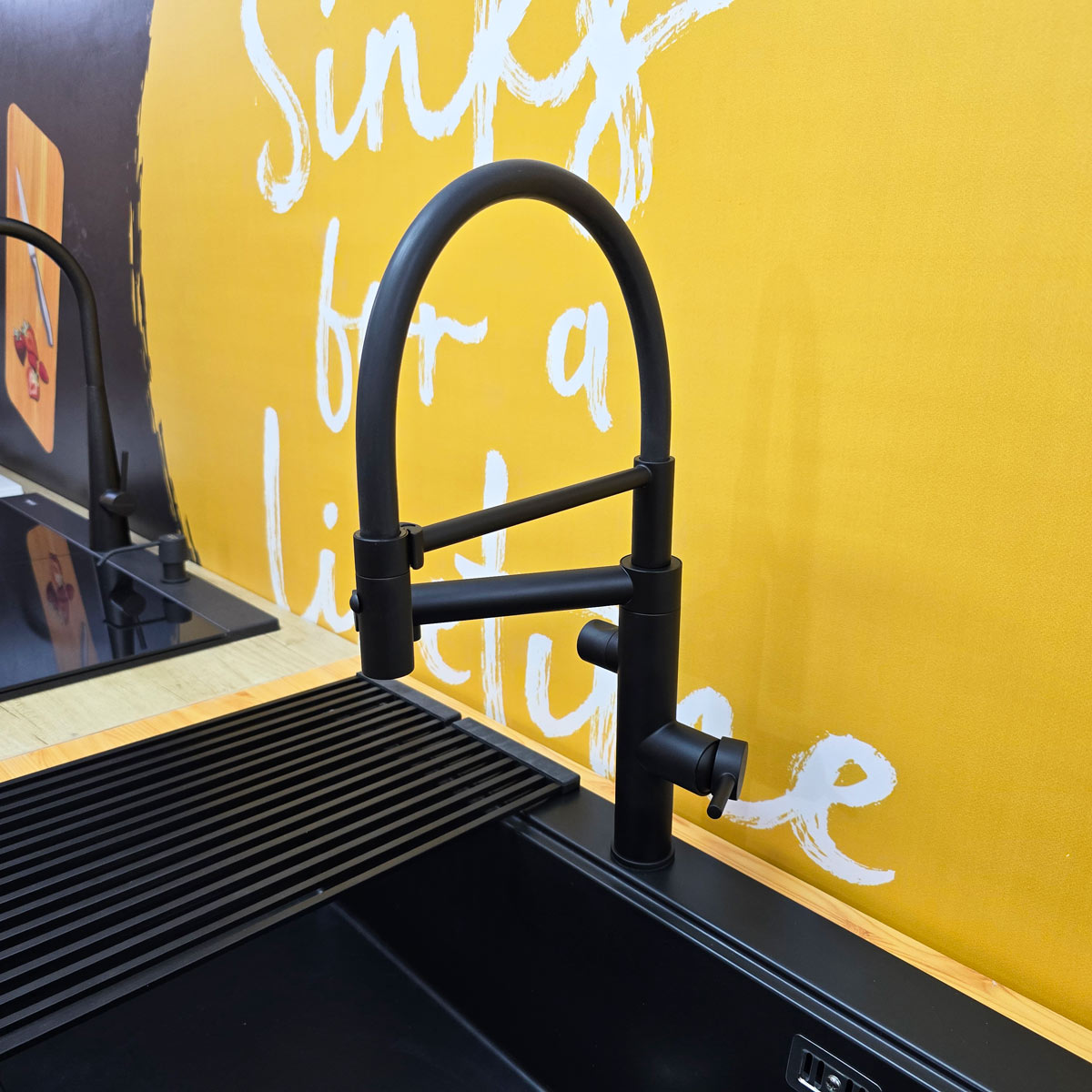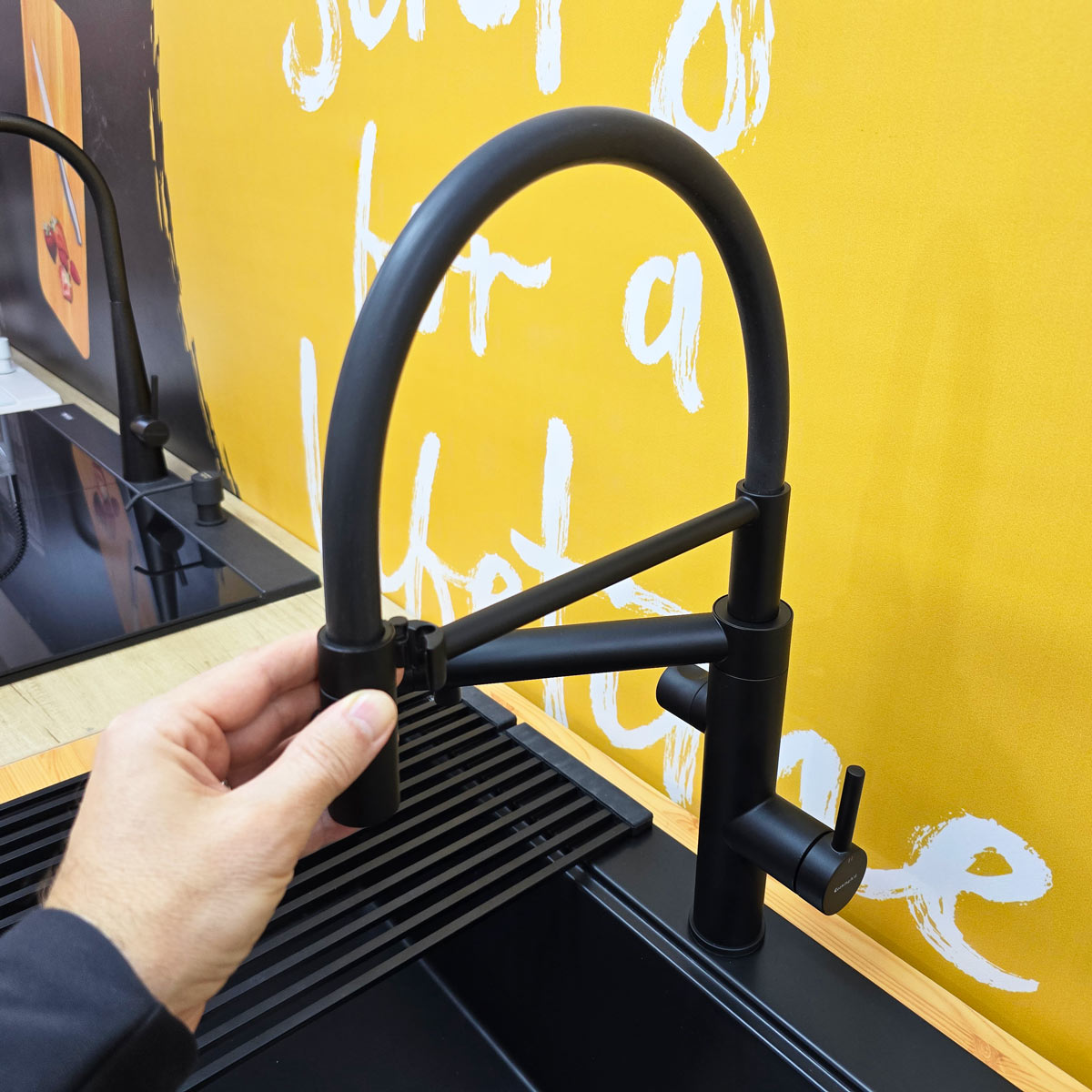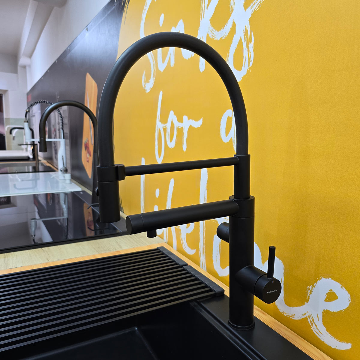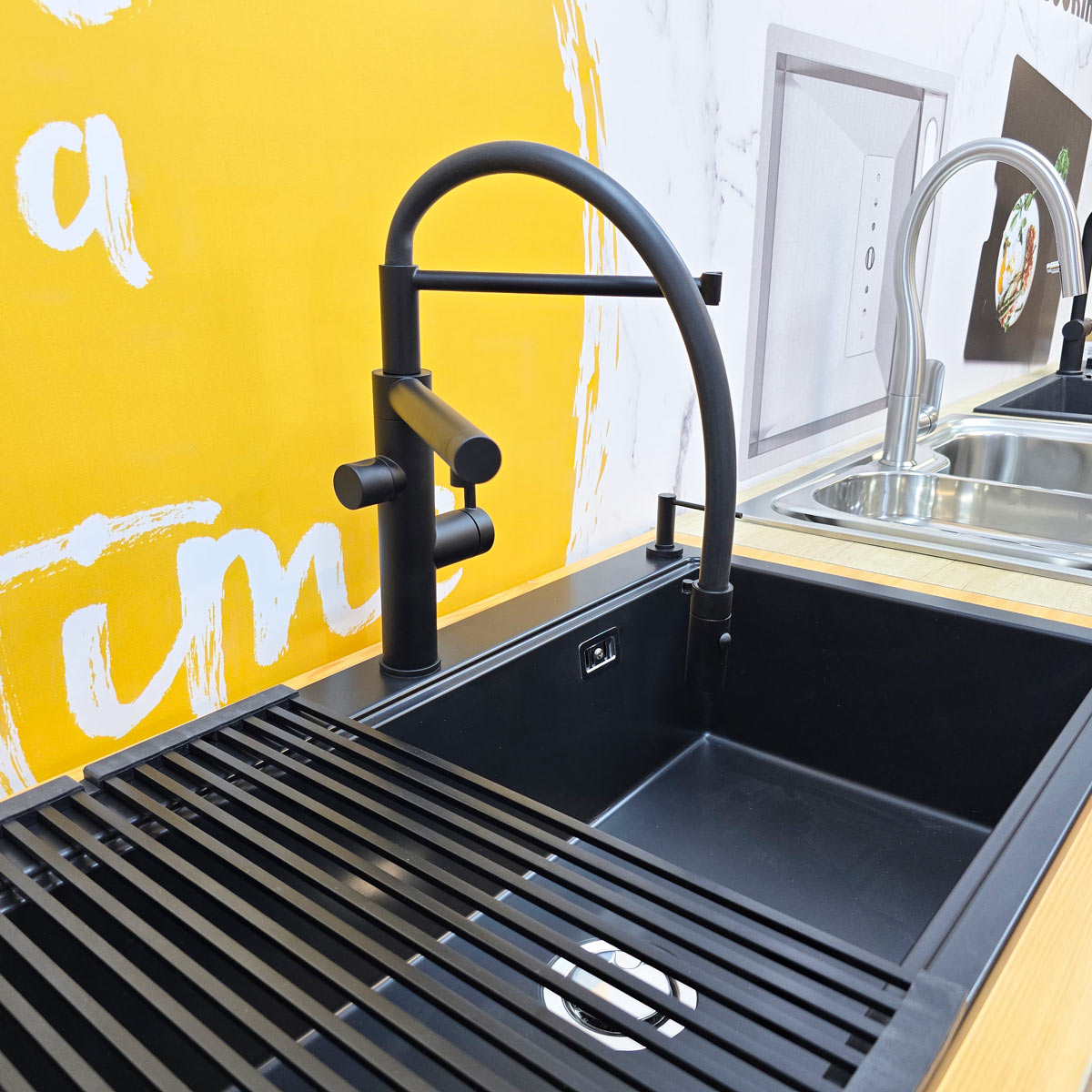 Bateria de chiuveta cu 3 cai si filtru integrat CookingAid PureFlow 3-Way Integrated Filter Black este o baterie premium de bucatarie, de o calitate exceptionala, rotativa 360° si echipata cu perlator detasabil. Aceasta furnizeaza atat apa calda si apa rece, cat si apa filtrata, prin intermediul filtrului de apa integrat direct in corpul bateriei.
