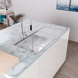 Marea majoritate a chiuvetelor pe care le gasiti in magazinele de profil din Romania au o grosime a inoxului intre 0.4 – 0.6 mm, observabila doar in zona de instalare a ventilului de inox, in jurul gaurii de evacuare, grosimea marginilor de sus fiind ascunsa prin tesire sau indoiri multiple. Acel gen de chiuvete flambeaza cand sunt apasate chiar si cu un deget de jos in sus si sunt sensibile la socuri mecanice. Chiuvetele CookingAid sunt chiuvete profesionale, de lux, cu o grosime a inoxului intre 1 – 1.2mm, dar la pret similar cu cele clasice oferite de alti producatori din bransa.
