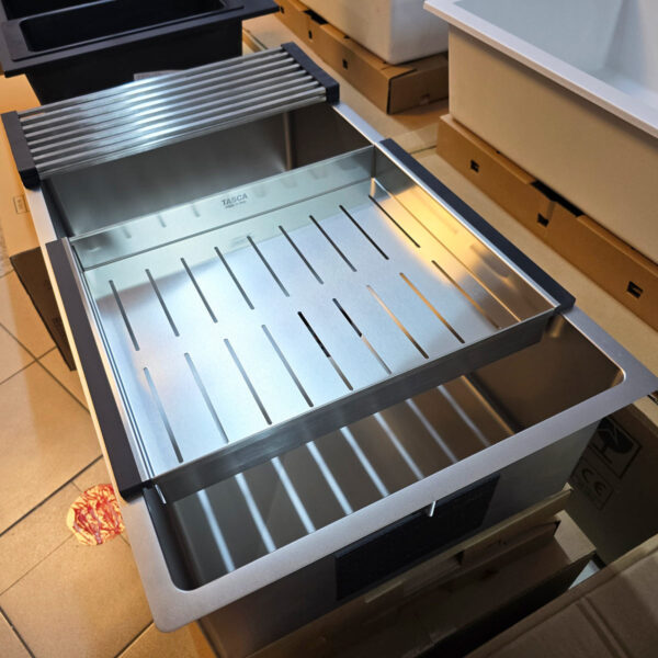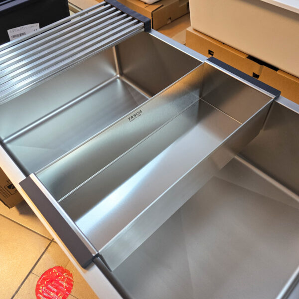 Chiuveta de bucatarie CookingAid-Tasca Canova CA70 DuriX, este o chiuveta din gama Premium a CookingAid realizata in colaborare cu producatorul italian Tasca Fratelli si face parte din noua colectie numita DuriX prin care producatorul redefineste standardele pentru chiuvetele din inox AISI 304 fabricate manual. Conceputa pentru a face fata utilizarii zilnice intense, aceasta gama impresioneaza printr-o rezistenta exceptionala la zgarieturi si o estetica moderna inconfundabila.