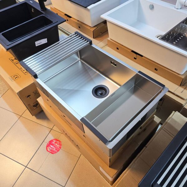 Este o chiuveta cu o singura cuva si ventil de scurgere rotund, cu inchidere si deschidere prin apasare/ridicare, ideala pentru bucatarii HIGH-END, pentru cei care doresc combinatia perfecta intre stilul modern, rezistenta la zgarieturi si aspectul mat.