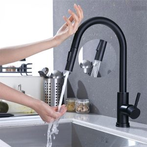 Adaugă în coșMAI MULTEBaterie CookingAid TOUCH ON BLACK CU SENZOR ATINGERE negru mat si furtun dus retractabil / extractibil + buton interschimbabil jet/dus si finisaj negru mat antiamprenta